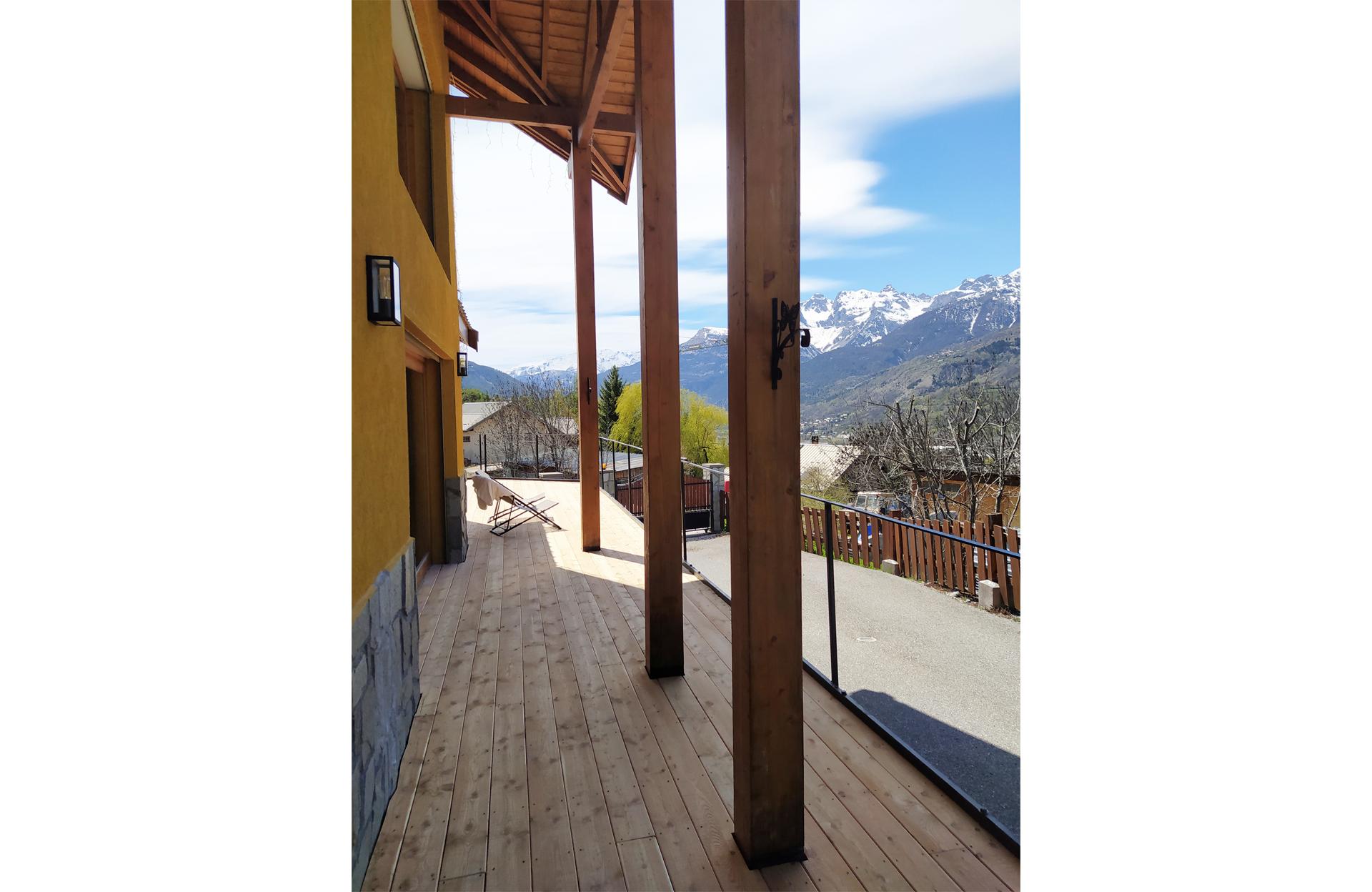 Situé sur les hauteurs de Brainçon, face au départ du domaine skiable de Serre-Chevalier, le chalet concerné par le projet était initialement composé de deux logements mitoyens identiques. Les travaux inités en 2004 n'avaient jamais été terminés, seul le gros oeuvre avait été réalisé. Notre intervention a consisté à rénover et restructurer ces deux logements afin de créer un T3 et un T5 destinés à la location touristique et aux séjours ponctuels des propriétaires.